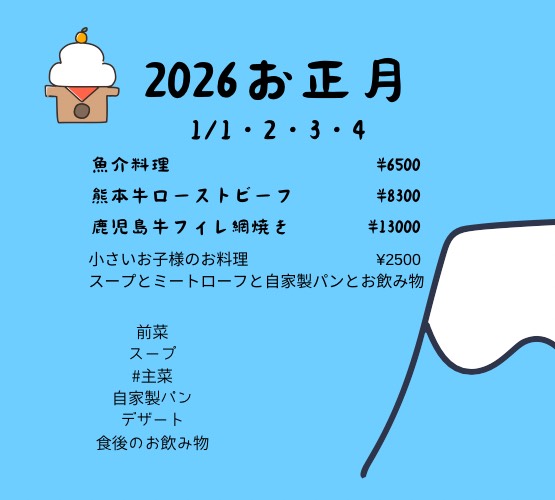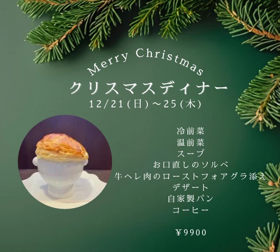 | ディナー 17:30 ~ 最終入店20:30 ¥3800~ | ● | × | × | ● | ● | ● | ● |