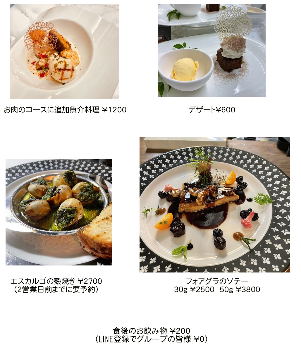 | ランチ 11:30 ~ 最終入店14:00 ¥3300~ | ● | × | × | ● | ● | ● | ● |